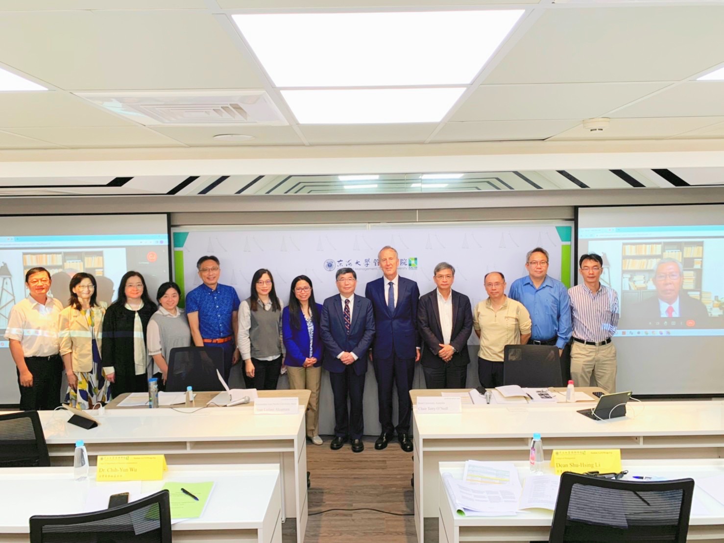 AACSB-accredited since February 2018, the College of Management and its faculty, students, professional staff, alumni, and business associates have undertaken a diversity of continuous improvement actions aligned with AACSB Business Standards in terms of engagement, innovation, and impact over the past five years. In November 2022, a peer review team (PRT) invited by AACSB International visited the college for the Continuous Improvement Review (CIR). Two PRT members, Chair Terry O’Neill, Dean of the Business School at Bond University in Australia, and Dr. Lailani Alcantara, Dean of the College of International Management at Ritsumeikan Asia Pacific University in Japan, travelled to campus in parallel with an online visit by Dr. Eko Suwardi, Former Dean of the Faculty of Economics and Business at Universitas Gadjah Mada in Indonesia. Over the visit, Dean Shu-Hsing Li and close-to-120 stakeholder representatives of the College of Management have participated in 14 review sessions with the PRT having highly appreciated the college’s outstanding achievements and progresses from pioneering research, excellent teaching, practical collaboration, to global exchange in the past five years. The three members also proposed invaluable advice on the college’s responses to key challenges from local and global recruitment and faculty development in bilingual education.